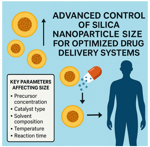 Conclusion Silica nanoparticles hold enormous potential as drug delivery systems, but their success relies heavily on precise size control. Systematic investigations into synthesis parameters such as precursor concentration, catalyst level, solvent ratio, temperature, and time have provided valuable insights for tailoring nanoparticle dimensions [1,4]. Continued research in this area will advance the translation of SiNPs from laboratory studies to real-world clinical applications, ultimately improving the efficacy of modern drug delivery strategies [2–4].